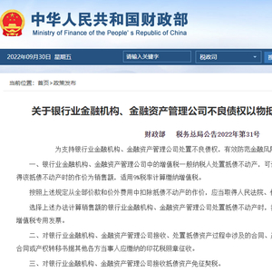 为化解金融机构不良资产,2022年9月30日财政部和国家税务总局联合发布《关于银行业金融机构、金融资产管理公司不良债权以物抵债有关税收政策的公告》,对银行业不良资产以物抵债税费做出调整。不仅将税费优惠范围从国有银行扩大至所有银行,还对多种税费进行减免。新规对不良资产行业影响几何?地方AMC能否享受优惠?本文将进行专业解读和分析。