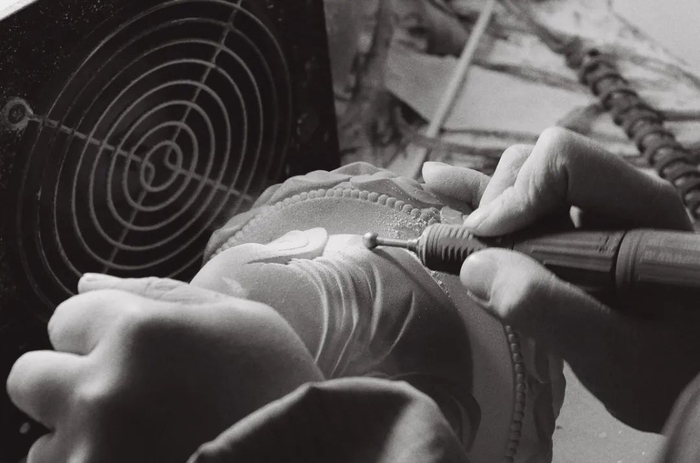 将设计创作理念绘成平面设计图稿,再雕塑立体原型。为了更和谐的比例与美感,每一笔一刀都必须精准细腻。