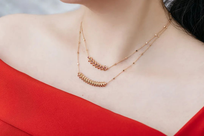 这款项链就再应景不过了,颈间点缀的红色宝石,让整个人都被瞬间点亮了,戴上它感觉也能开启2023的“红”运,为新年博个好彩头~