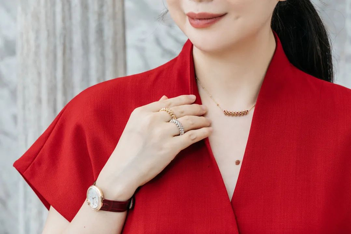 实物美到令人惊艳,延续了这个系列的浑圆设计与复古优雅造型,融合卡地亚经典的红金配色,色调丰富、典雅喜庆,和瑞意吉祥的新春气氛完美呼应。