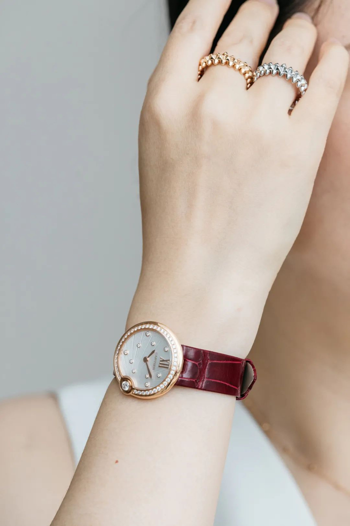 和Clash de Cartier系列戒指一起佩戴更绝,上手自带高光,有种云淡风轻的高级感,不经意间就能吸引目光。华美的珠宝元素+亮面红色鳄鱼皮表带,特别能衬托亚洲女性的出众气质,是送礼或者犒赏自己的绝佳选择了~