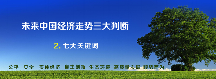 2、未来的大势是七大关键词:公平、安全、实体经济、自主创新、生态环境、高质量发展、顺势而为。