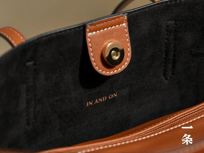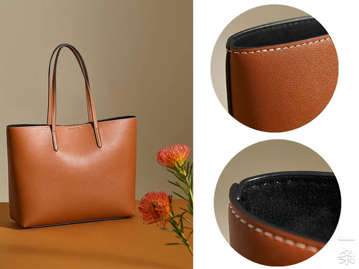 这个托特包的拼接处、油边和车线,做工精致,品质感很好。