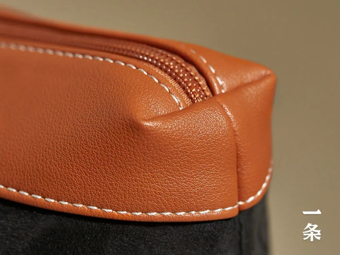 绒面部分,绒毛质感细腻,对放入包内的物品很友好。