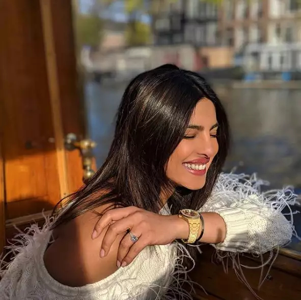 像印度知名女演员Priyanka Chopra,未婚夫Nicholas Jonas为她选订婚戒时直接包场Tiffany,最终选定一枚4克拉枕形切割钻石,价值约20万美元,也是相当壕气~