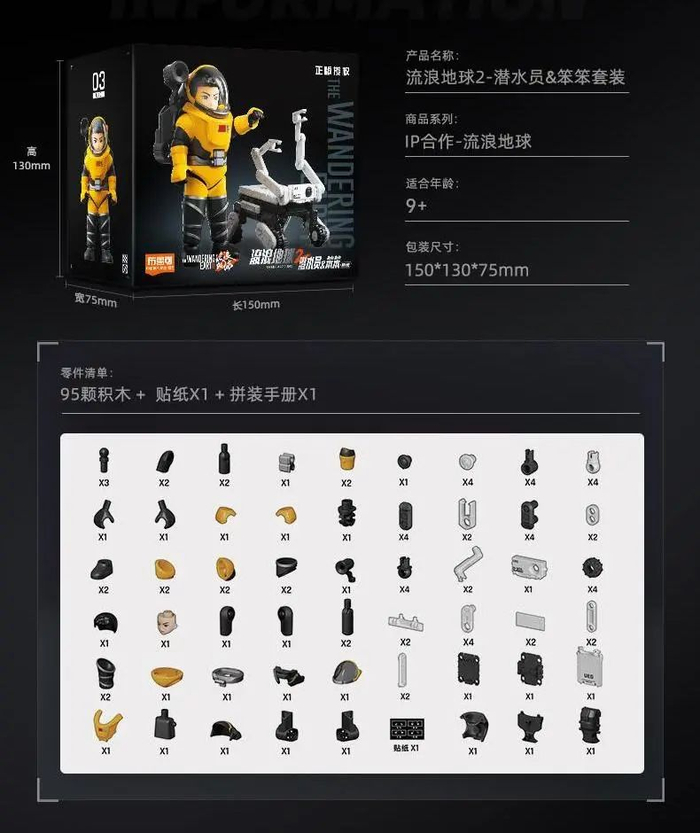 1、布鲁可x流浪地球2联名,正版授权积木。宇航员xMMU和潜水员x笨笨两套任选!