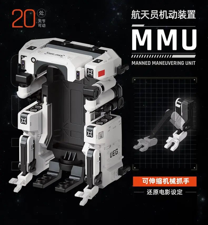 这套航天员x航天机动装置MMU的布鲁可积木,就将影片中在月球上工作的航天员以及好帮手MMU复刻了出来。