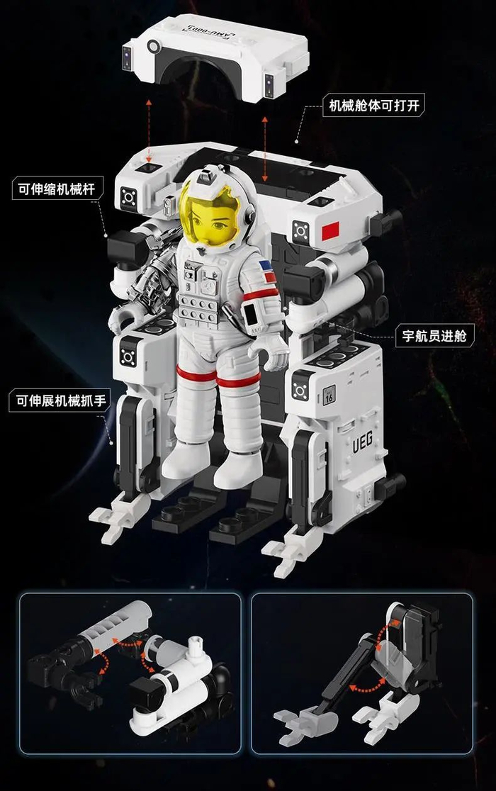 机械舱体可以打开,让宇航员自由进出舱,合二为一!