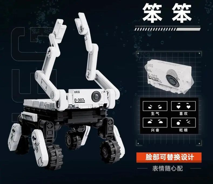 而且像机械舱体、面罩、胸甲等地方都是可以打开关闭的;连笨笨脸上的表情都有四种可以替换,细节拉满。