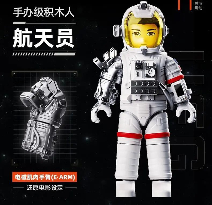 航天员身穿银白色宇航服,科技感满满。11处关节可动,特别是腿部关节灵活,可玩性极强。