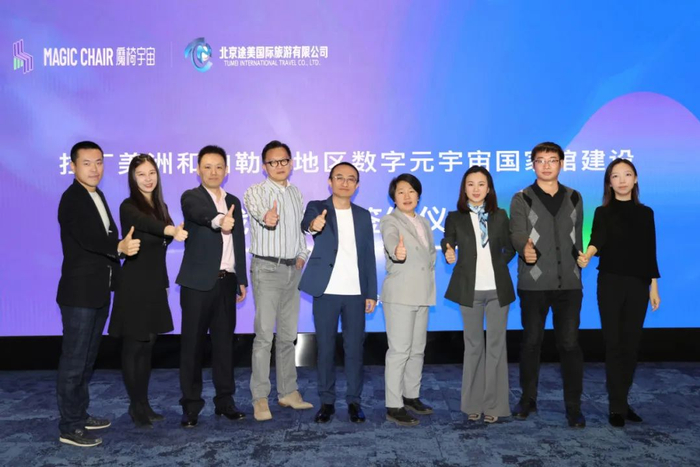 魔椅宇宙Magic Chair(以下简称魔椅宇宙)是原誉神打造的核心元宇宙品牌,是专注于元宇宙内容生态商业建设和运营的服务商,聚集了华君传媒、华汾酒业、新觉醒、光照沣川等相关互联网文娱内容建设以及自媒体传播的产业集群业态。自品牌创立以来,魔椅宇宙坚持数字内容为核心,以数实共生赋能企业,以多元融合链接用户,打通供需两端,实现价值共创。北京途美国际旅游有限公司长期致力于传播和推广拉丁美洲和加勒比地区文化和生活方式、促进中拉人文交流和经贸往来,是拉美多国驻华使馆的战略合作伙伴。本次携手途美国际,双方将围绕元宇宙场景搭建,基于Web3.0数字框架建设,创建多维应用场景。