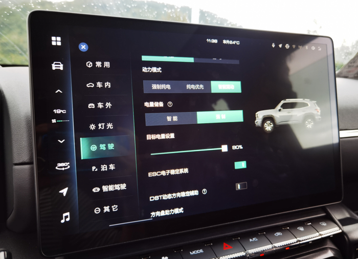 此次试驾我们选择的是智能混动模式,前半段满电出发时会自动选择纯电模式,即使是拥堵路段的走走停停,因为没有发动机启动瞬间的轻微抖动,极大地提高了行车的静谧性与舒适性。