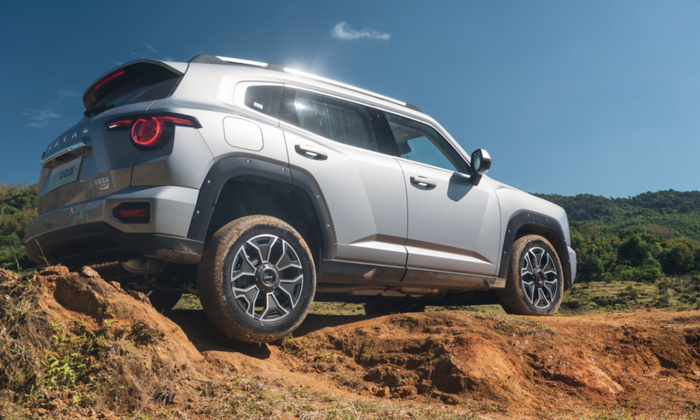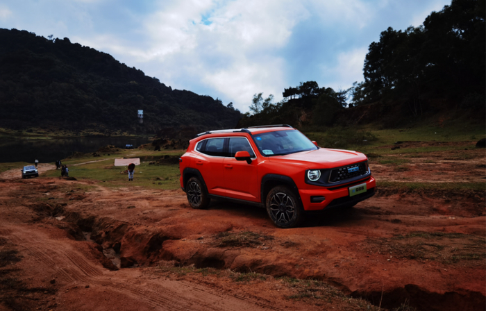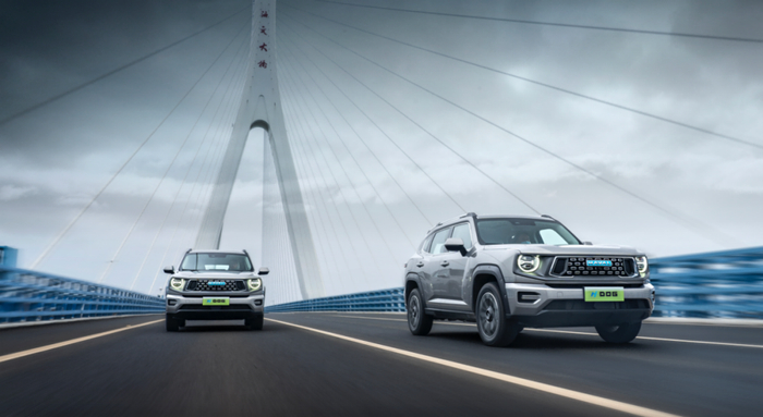 作为插电混动车型的哈弗二代大狗完全能化解这份尴尬。先说说哈弗二代大狗的动力,它采用混动专用的1.5T涡轮增压发动机+2挡DHT总成,总功率240kW、总扭矩530N·m,其账面参数足以媲美合资2.5T中大型SUV。这一动力对于越野来说尤为重要,我们此次试驾就深有体会。