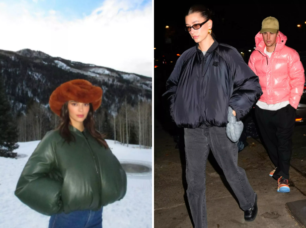 相比之下,“欧美带货王”Kendall和Hailey都穿过的羽绒服,则以“现实感”取胜——看起来有点像个装得鼓鼓囊囊的垃圾袋。这件物理上就很夺目的衣服,入选了时尚搜索引擎 LYST 的2022年第四季度热门产品榜单。