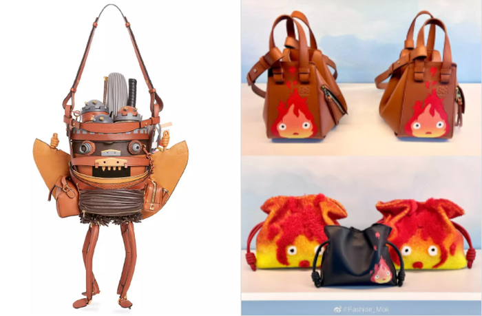 比起蕾哈娜的满身红,最近Loewe和《哈尔的移动城堡》合作,品牌引以为傲的皮革工艺、制包技术,加上宫崎骏老爷子天马行空的想象力制造出的“丑包”,更符合围观群众对这个品牌的第一印象。
