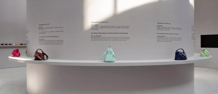 Loewe提取清丽通透的釉彩,包括浅青、白、胭脂红等十种中国传统颜色,将其融入成衣和标志性手袋,真正做到了“化用”而非“挪用”或“拼贴”文化元素,引网友盛赞:“喜欢这种正大光明的文化交流。”