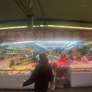 在京贸物联2号厅,有一间60平米不大的熟食摊位,一天的流水营业额就有3万多。这家摊位叫爱飞熟食店。