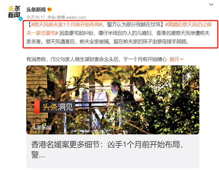 你都无法想象,一个生了4个孩子的母亲,该付出怎样的努力,才能维持住一个模特级的身材。她这么拼,无非就是为了四个孩子。因为自己事业上的成功,2019年时,蔡天凤购买了一套8000万的豪宅,挂在邝父名下,给邝港智全家住着。正是这套豪宅,后来成了邝家谋杀蔡天凤的导火索。