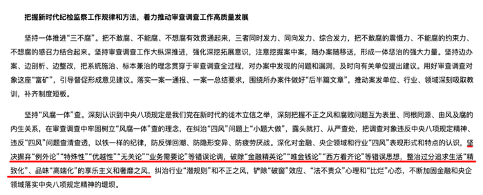 在破除“金融精英论”、“唯金钱论”之前,文章里还有一句:坚决摒弃“例外论”“特殊性”“优越性”“无关论”“业务需要论”等错误论调。