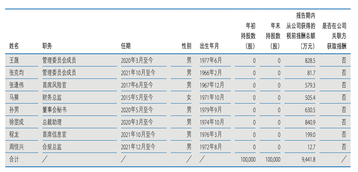 (中金公司部分高管2021年薪酬)