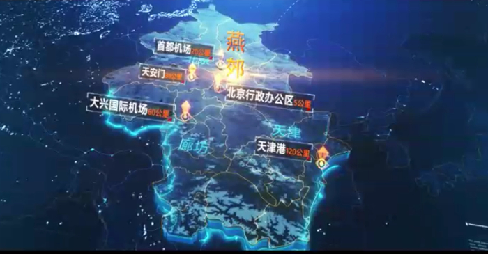 燕郊高新区西与北京城市副中心(通州区)隔潮白河相望,北与顺义区接壤相连,距北京行政办公区5公里,距天安门30公里,距首都机场20公里、大兴国际机场60公里、天津港120公里,是河北省加快推进京津冀协同发展和服务北京城市副中心建设的最前沿。