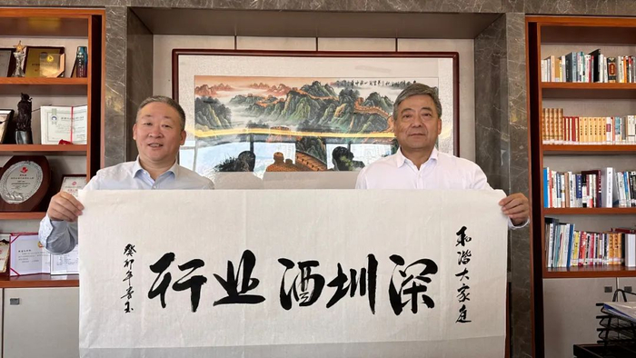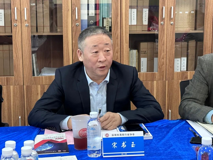 2月23日,中国酒业协会宋书玉理事长一行走进深圳,前往深圳市酒类行业协会开展深圳地区酒类市场重点经销商市场调研,对目前深圳市场疫情过后销售恢复的状况、酒商动销以及库存情况、深圳市场酒类各价格带主销品牌竞争格局等进行深度调研。深圳市酒类行业协会会长李汉强、执行会长谢宝、秘书长杨克建以及部分重要经销商代表等热情接待宋书玉理事长一行,并举行交流座谈。