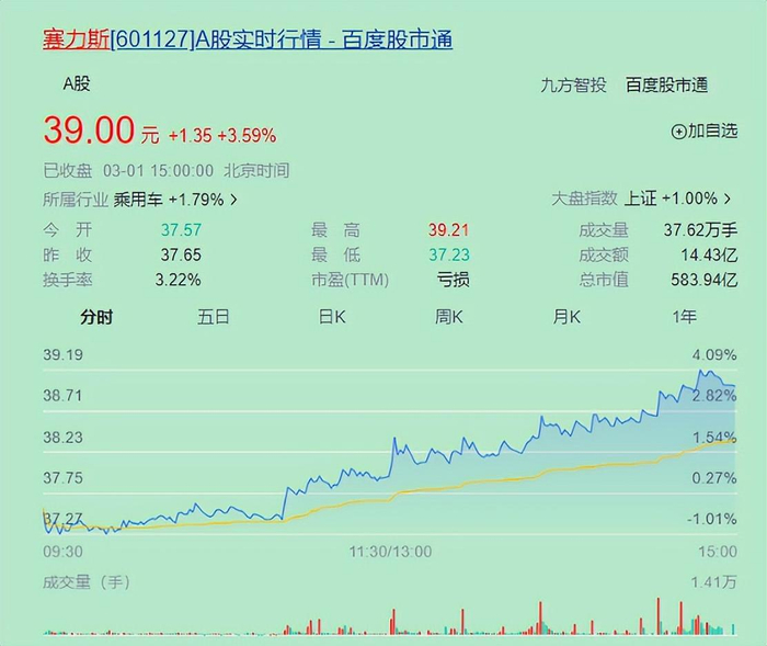 受此消息刺激,3月1日,赛力斯股价上涨3.59%,一扫之前连续多天的颓势。
