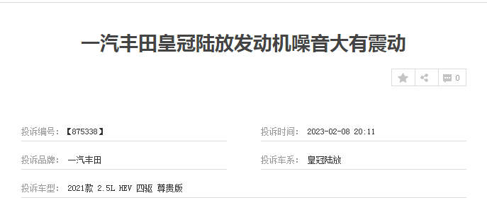 皇冠陆放,是一汽丰田旗下的中型SUV,目前的指导价为27.58-35.28万元,在售车型可分为纯燃油、油电混动两类版本。而投诉涉及的车型,均为2021款、2022款这些较新的车型。