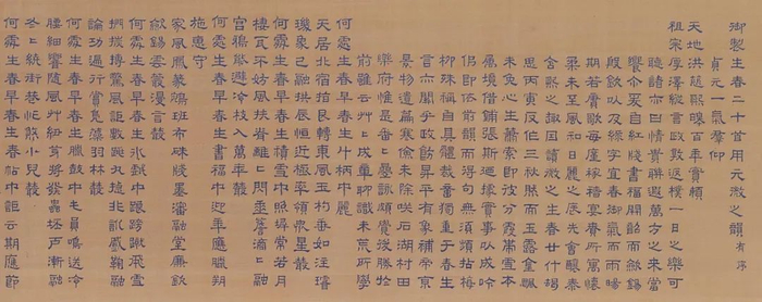 |《缂丝春夏秋冬诗卷》手卷共有四卷,在米色地上用蓝色丝线分别缂织隶书春、夏、秋、冬四季诗,每卷以“从”韵的形式,仿照唐代诗人元微之的《生春二十首》,织“生春、生夏、生秋、生冬”五言诗各20首,咏四季之春、夏、秋、冬。每卷内容不同,但形式一样,如生春20首,从天象、节气等自然现象的变化,进而叙及人们相关的活动,如写春联、颁赐、守岁、放爆竹、祭祀、歌颂皇恩、赈灾等活动,诗句优美,文笔流畅。图/故宫博物院