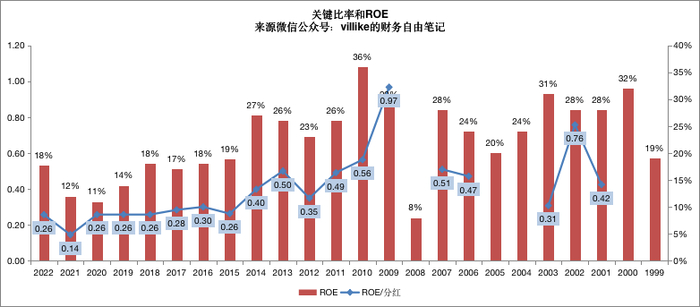 1、福耀2022年ROE18%,提高5个点,去年是13%,分红比率69%,关键比率0.26,从2014年以后,福耀已经没有在我的两个指标上达标了,这已经很说明问题,见下图。