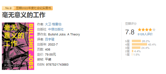 前耶鲁大学副教授、人类学家大卫·格雷伯也写过一本书,叫做《毫无意义的工作》。