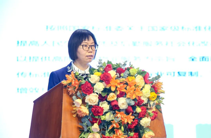 山东省市场监督管理局标准化处副处长潘爱娟宣读了国家标准化管理委员会〔2022〕46号文件《关于下达2022年度国家级服务业标准化示范项目的通知》。