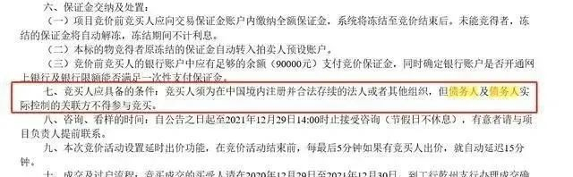 “与本次转让标的有利益关系的当事人不得参与竞拍,包括但不限于:债务人、债务人实际控制人、债务人关联企业及其他与债务人、担保人存在直接或间接股权或控制关系的企业及自然人,本笔交易不构成关联交易。”