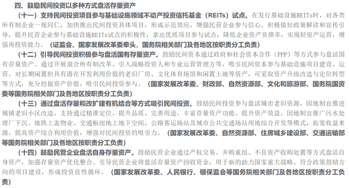 此外,针对“21条”国家发展改革委政研室副主任、委新闻发言人孟玮表示:鼓励民间投资以多种方式盘活存量资产。在发行基础设施领域不动产投资信托基金(REITs)时,对各类所有制企业一视同仁,加快推出民间投资项目。