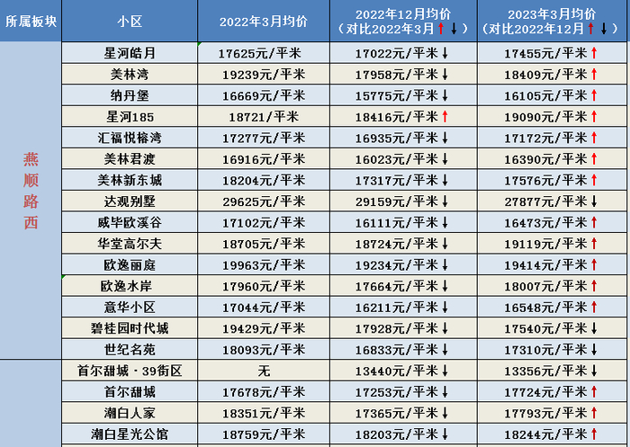 附:燕郊各小区3月二手房最新均价(数据来源贝壳二手房,不作为权威数据参考,不作为实际购房价格指导)。