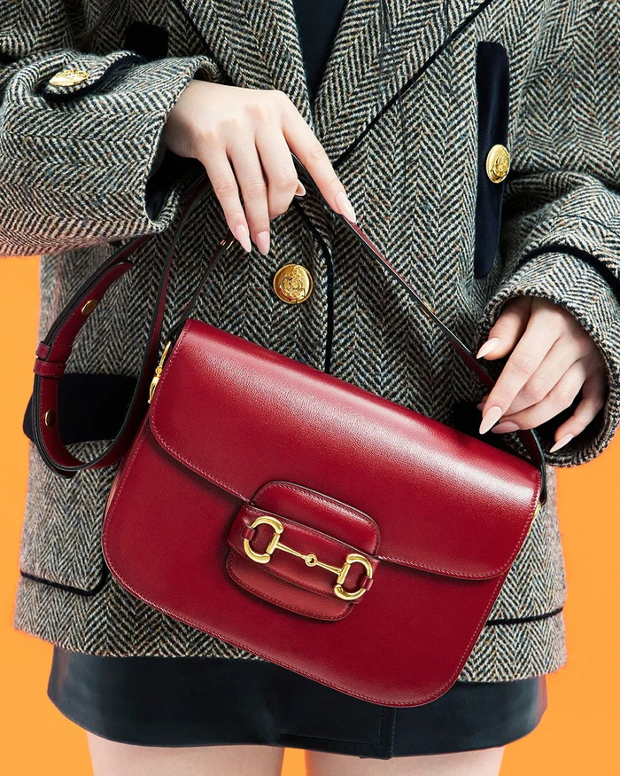 最早在50年代,Gucci就把它放在了深棕色的骑缝线皮革手袋上,这也是包包名称中1955的来由。