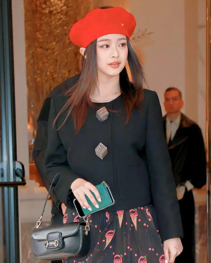 在Newjeans出道还不满半年时,他们便一眼相中了Hanni,让她在私服和舞台都穿过Gucci之后,果断签下成为品牌大使,再第一时间请去米兰看秀: