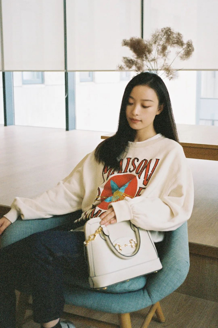 倪妮拿的是Horsebit 1955系列中的小号手提袋,它把Gucci的经典包型和马衔扣“强强联手”,时髦又能装。