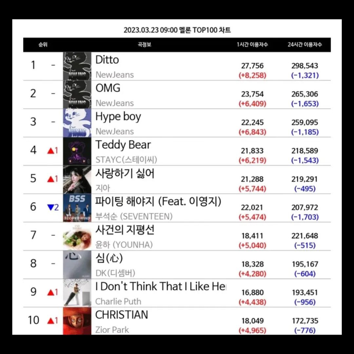 一月初推出的《Ditto》和《OMG》两首新歌至今仍后劲十足,连同旧曲《Hype Boy》在三月底依然霸占Melon音源榜前三,更是创下多项Spotify全球榜的女团历史纪录。