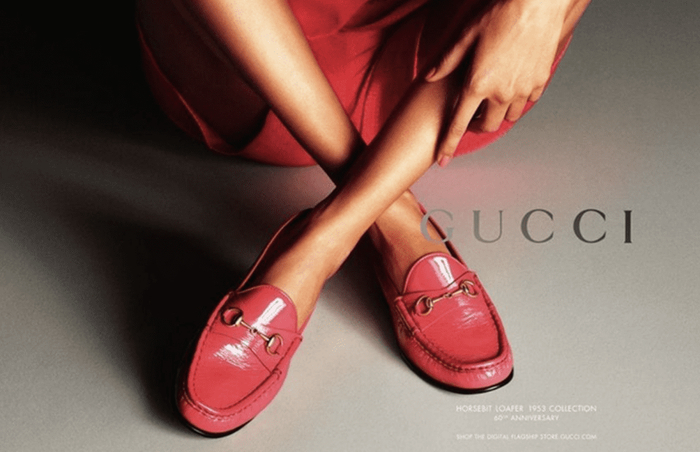 随后它们出现在了各种Gucci的单品上,或作为印花、或作为装饰,尤其是Gucci家最经典的乐福鞋,让马衔扣成为了一个极具传播度的Gucci符号。