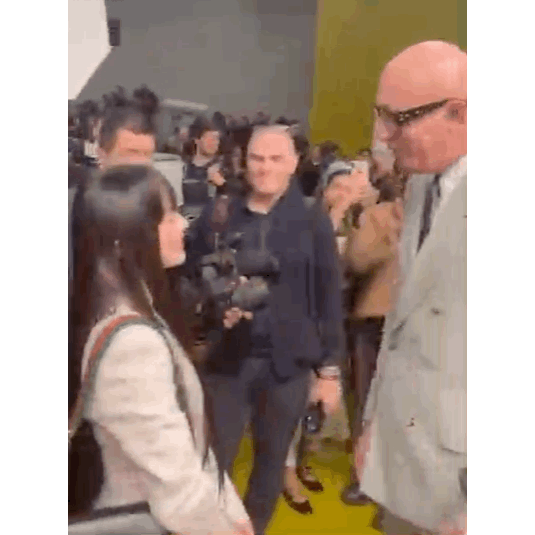 虽是秀场新人但也毫不生涩,有人捕捉到她和Gucci CEO Marco Bizzarri先生相聊甚欢的画面,像是老友相见。