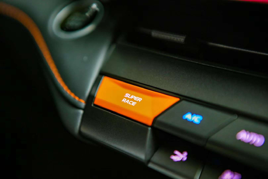 如果这个劲还不够,可以点一下中控台的橙色按钮,开启“Super Race”赛道模式后,仪表盘显示模拟赛道界面、尾部的电动扰流板升起、还有模拟声浪等,不仅仪式感十足,还激发者驾驶者的肾上腺素。Ps:这个模式下比较耗油,还是少用吧。