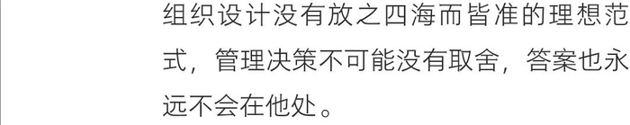 权力的聚与散问题难以解决,以至于在常规情况下,组织往往通过借鉴最佳实践和市场组织设计风潮来帮助决策。然而正如前述案例可见,每个组织所处环境差异巨大,且在不同发展阶段有不同的组织设计需求,“看他人”很难从根本上解决问题。