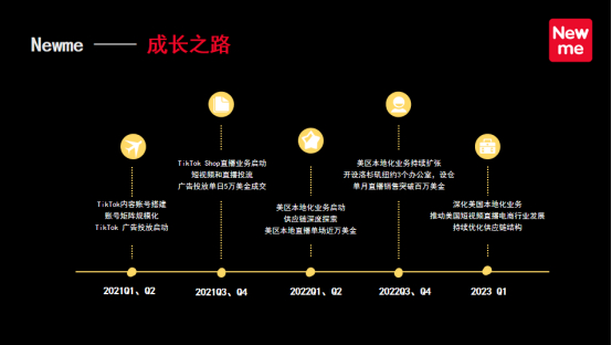 Newme是一家电商渠道品牌公司,我希望它能成为海外的交个朋友或东方甄选。在TikTok上奋斗两年,我们在4个城市有办公点,一共50名员工,在东南亚一些地方单月已经能达到1千万美金的销售额,东南亚电商的发展速度远超我的想象。