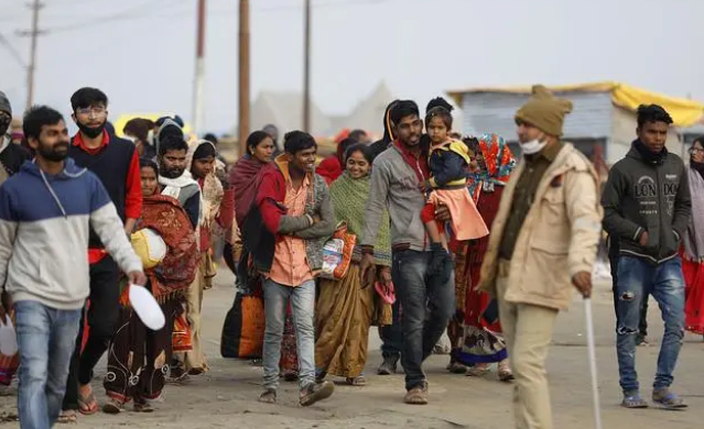 路上行进的印度民众
