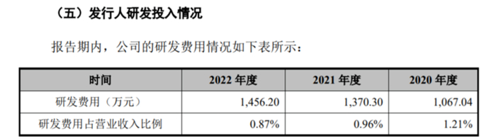 根据最新招股书,从2020年到2022年,毛戈平化妆品有限公司的研发费用率从1.21%下降到0.87%,远低于同行2.38%的水平。