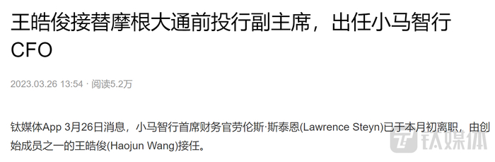 据钛媒体APP3月26日消息,小马智行首席财务官劳伦斯·斯泰恩已于本月初离职,由创始成员之一的王皓俊接任。