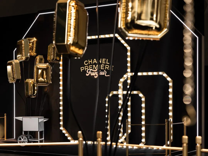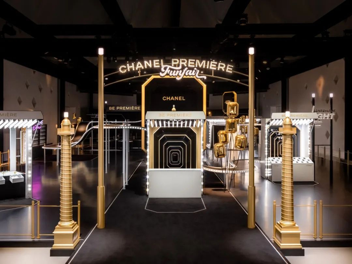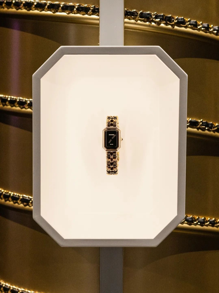 现场的黑金配色,醒目的几何八角造型等每一处布置,都藏着PREMIÈRE腕表的身影。不得不说,在玩转自家经典元素这件事上,香奈儿从不会让你失望。