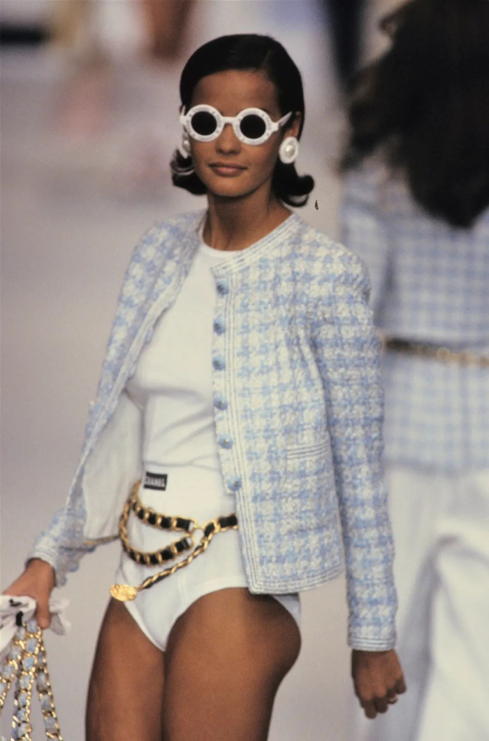 这不是皮穿链元素第一次被运用在包包之外的地方了,90年代初的香奈儿秀场上,随处可见麻豆们腰间的“皮穿链”腰带。