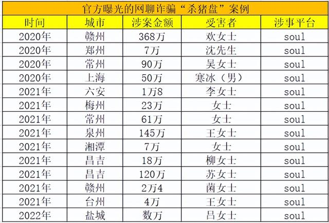 据不完全统计,目前与Soul有关的杀猪盘骗局已被曝光多达几十起,诈骗金额从几万元到几百万元不等,而这还仅仅是公安部门公布在网上的典型杀猪盘案例。